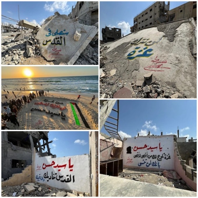 فلسطين > بالصور : لوحة وفاء من غزة إلى الشهيد السيد حسن نصر الله